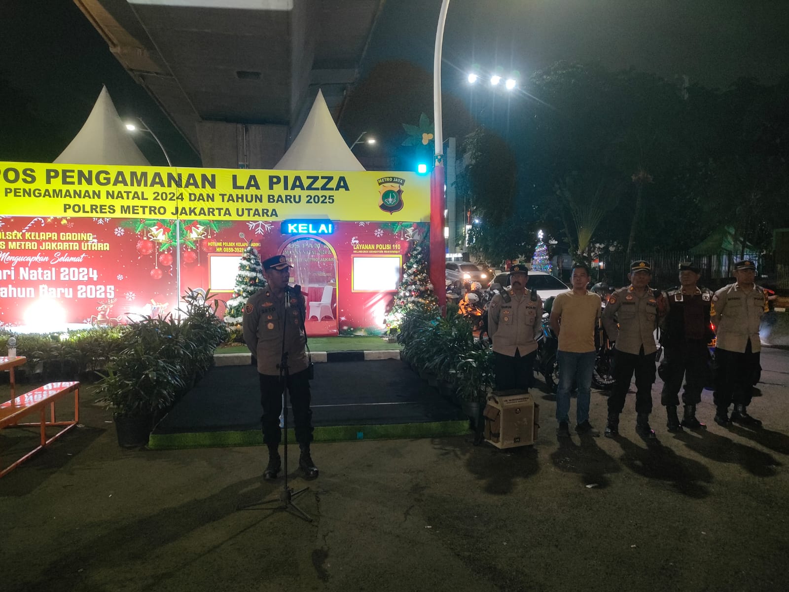 Jakarta, – Polsek Kelapa Gading menggelar Apel Kegiatan Rutin yang Ditingkatkan (KRYD) di depan Pos Pam Lapiazza, Jl. Boulevard Raya, Kelapa Gading, Jakarta Utara. Kegiatan yang berlangsung pukul 23.00 WIB ini menjadi langkah strategis untuk menciptakan suasana aman dan kondusif menjelang perayaan Natal 2024 dan Tahun Baru 2025.
