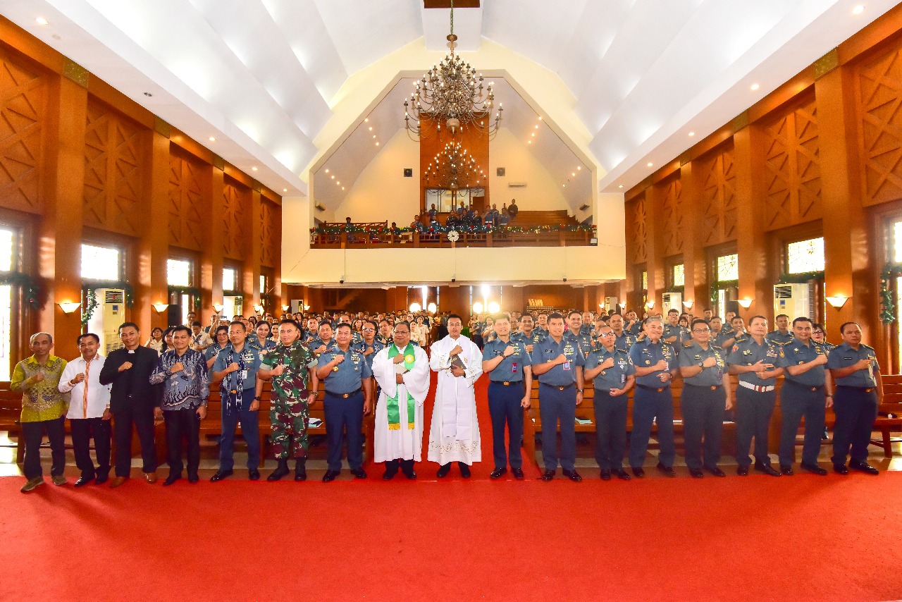 Dalam khotbahnya, Pendeta Abraham Ruben Persang, M.Th., menyampaikan tentang kelahiran Yesus Kristus sebagai Firman Allah yang lahir untuk menjadi cahaya dan terang dunia. Lukas 2:20 ayat ini direfleksikan kepada prajurit TNI AL yang hendaknya menjadi contoh dan teladan dalam pengabdiannya ditengah-tengah masyarakat. Senada dengan Pendeta Abraham Ruben Persang, M.Th., Pastor Fransiskus Riyanto, S.Fil, PR pun menyampaikan refleksi natal untuk para prajurit TNI AL demi persatuan dan kesatuan bangsa serta untuk keselamatan seluruh umat manusia juga kemajuan negara Indonesia.