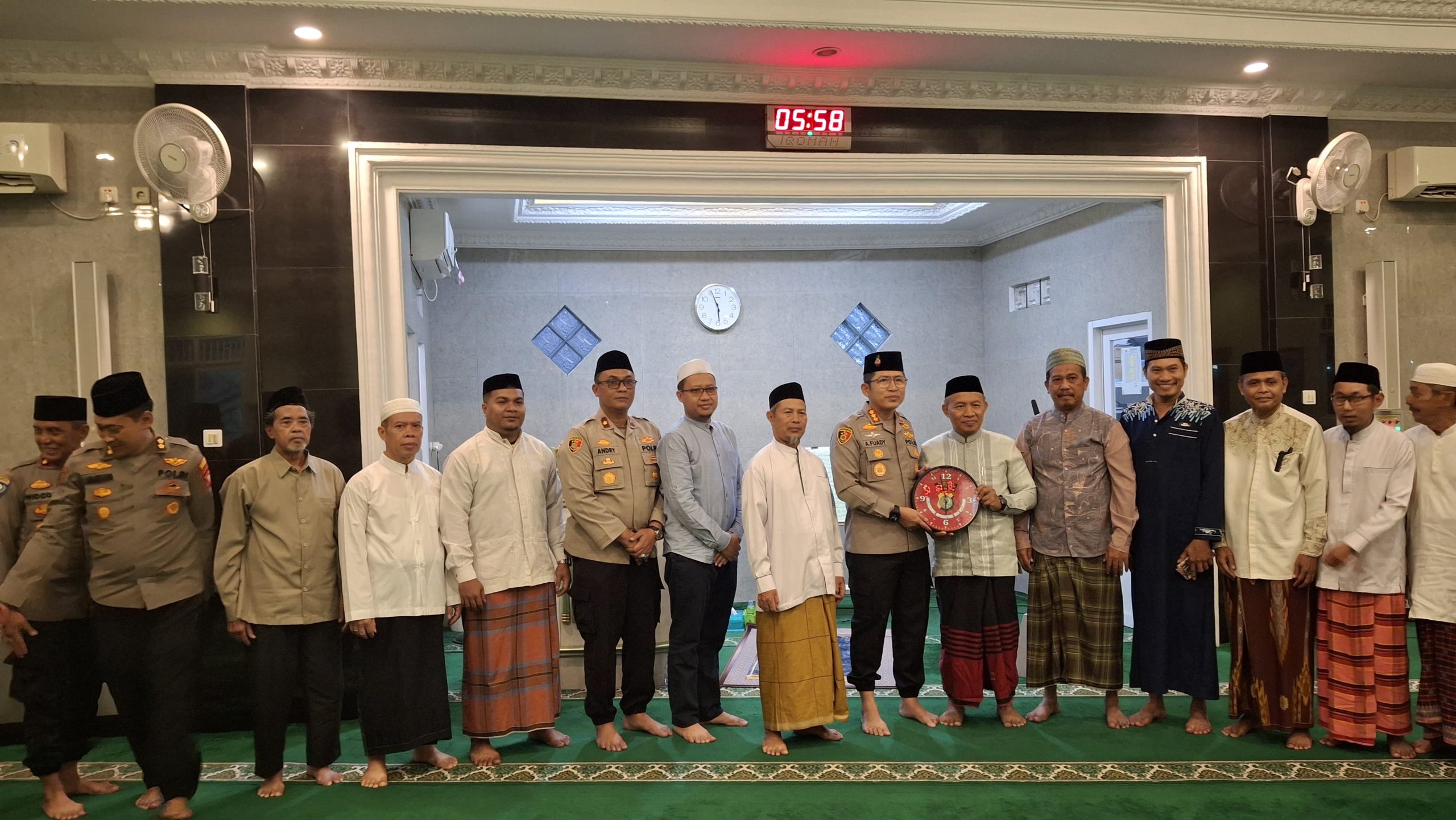 Acara ditutup dengan ramah tamah antara jajaran kepolisian dan pengurus DKM Masjid At-Taubah.