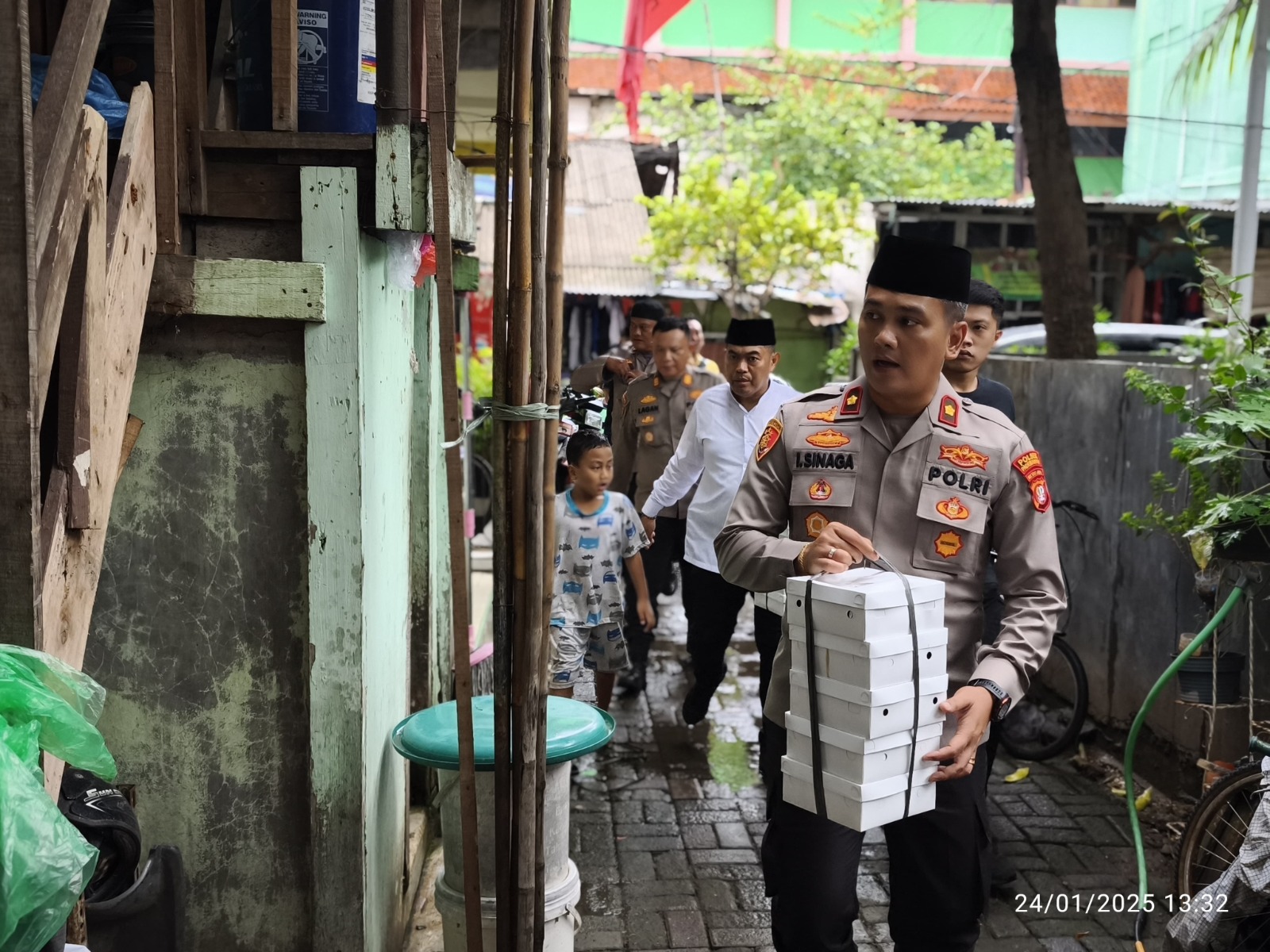 Jakarta Utara – Suasana di RW 004 Kelurahan Ancol, Kecamatan Pademangan, dipenuhi kehangatan. Tim dari Polsek Pademangan hadir membagikan 100 nasi kotak kepada warga yang membutuhkan di wilayah yang dikenal sebagai salah satu area pemukiman padat penduduk (slum area).