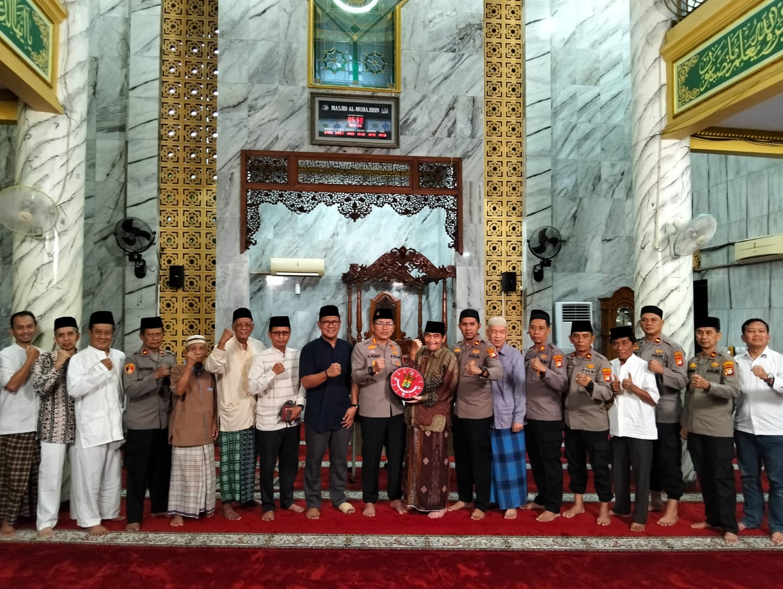 Di akhir acara, dilakukan foto bersama dan pemberian cinderamata oleh Kapolres kepada DKM Masjid Jami Al-Muhajirin sebagai simbol penghormatan.