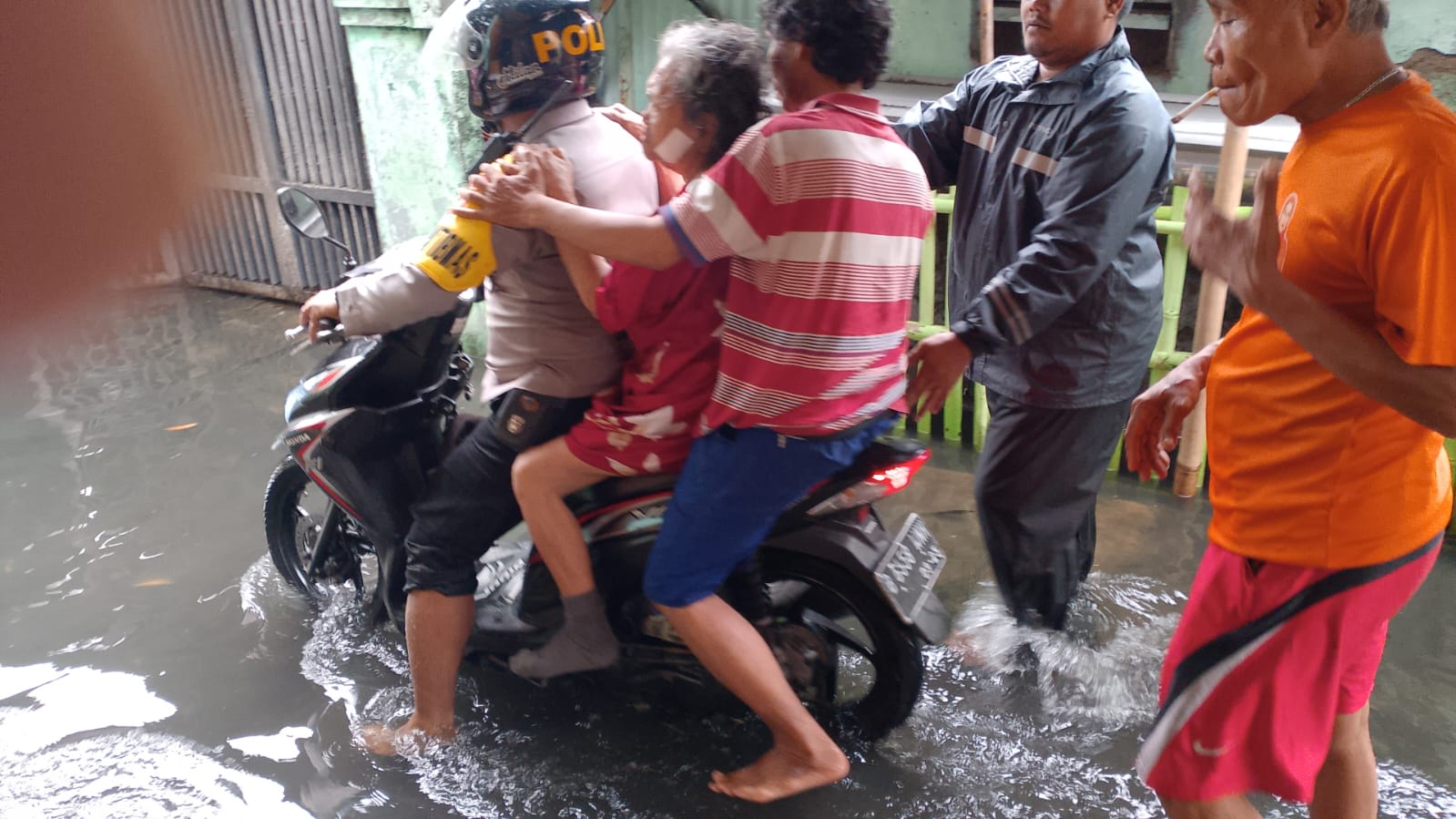 Bhabinkamtibmas Polsek Koja Lakukan Evakuasi Cepat Warga Sakit Terdampak Banjir
