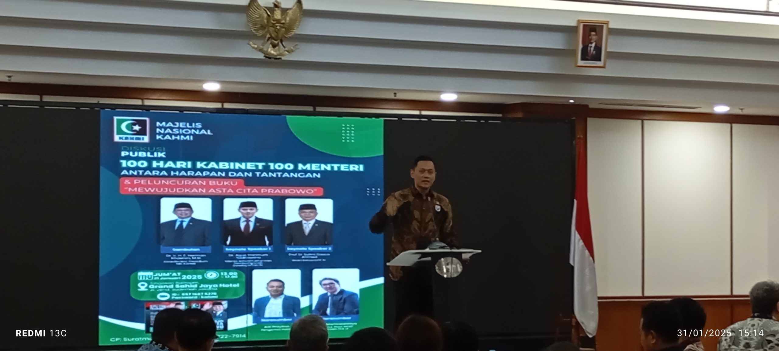 Jakarta- KAHMI menggelar acara Diskusi Publik 100 Hari 100 Kabinet Menteri, usung tema “Antara Harapan dan Tantangan, di Rangkai dengan peluncuran Buku “Mewujudkan Asta Cita Prabowo. Jum’at (31/01/2025). bertempat Grand Sahid Jaya Hotel.