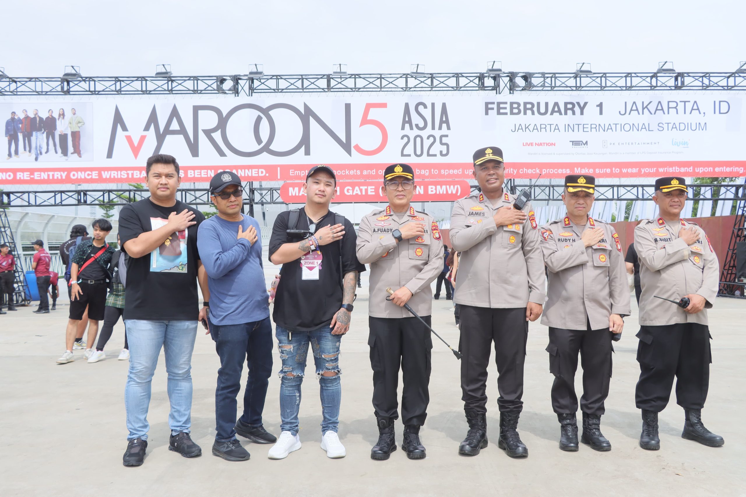 Jakarta, – Konser band legendaris Maroon 5 di Jakarta International Stadium (JIS), Tanjung Priok, Jakarta Utara, mendapat pengamanan super ketat. Sebanyak 1.507 personel gabungan dari berbagai instansi, termasuk Polda Metro Jaya, Polres Metro Jakarta Utara, Polsek jajaran, TNI, serta unsur Pemprov DKI Jakarta, diterjunkan untuk memastikan keamanan dan kelancaran acara.