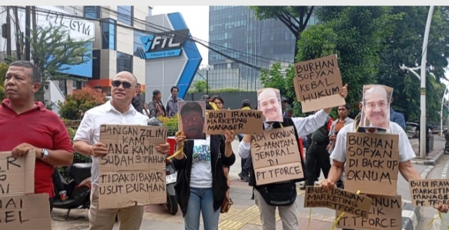 Pengunjuk rasa juga memampang foto Burhan, Budi, Direktur Utama PT. Tforce Indonesia Jaya, Mayjen TNI Purn. Eddy Kristanto, Letjen Marinir Purn. Alfan Burhanuddin, dan foto Irjen Pol. Purn Raja Erisman selaku Komisaris PT. Tforce Indonesia Jaya.