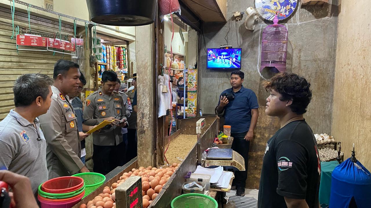 Kegiatan pengecekan berlangsung dengan lancar dan penuh keakraban antara aparat kepolisian, pedagang, serta masyarakat yang sedang berbelanja.