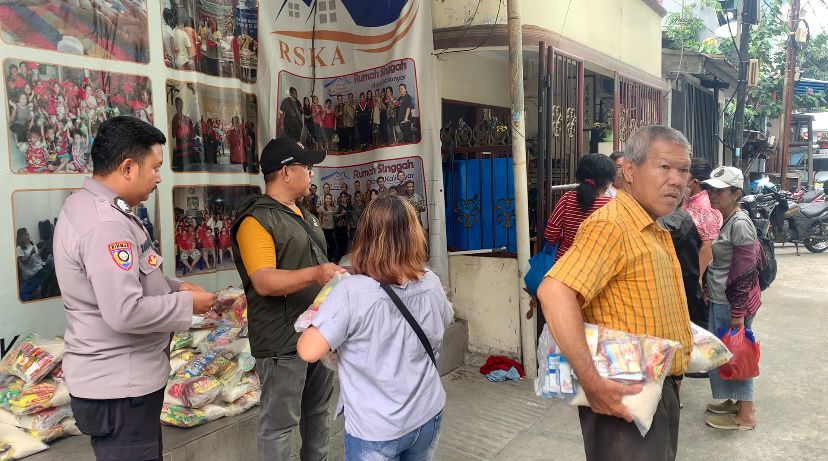 Jakarta – Polsek Pademangan, Polres Metro Jakarta Utara, menggelar kegiatan sosial dengan membagikan sembako kepada jemaat gereja dan warga sekitar yang membutuhkan. Kegiatan ini berlangsung di RSIA (Rumah Singgah Kasih Ampera), Kelurahan Pademangan Barat, Kecamatan Pademangan, Jakarta Utara, pada Senin (3/3) pukul 10.00 WIB.