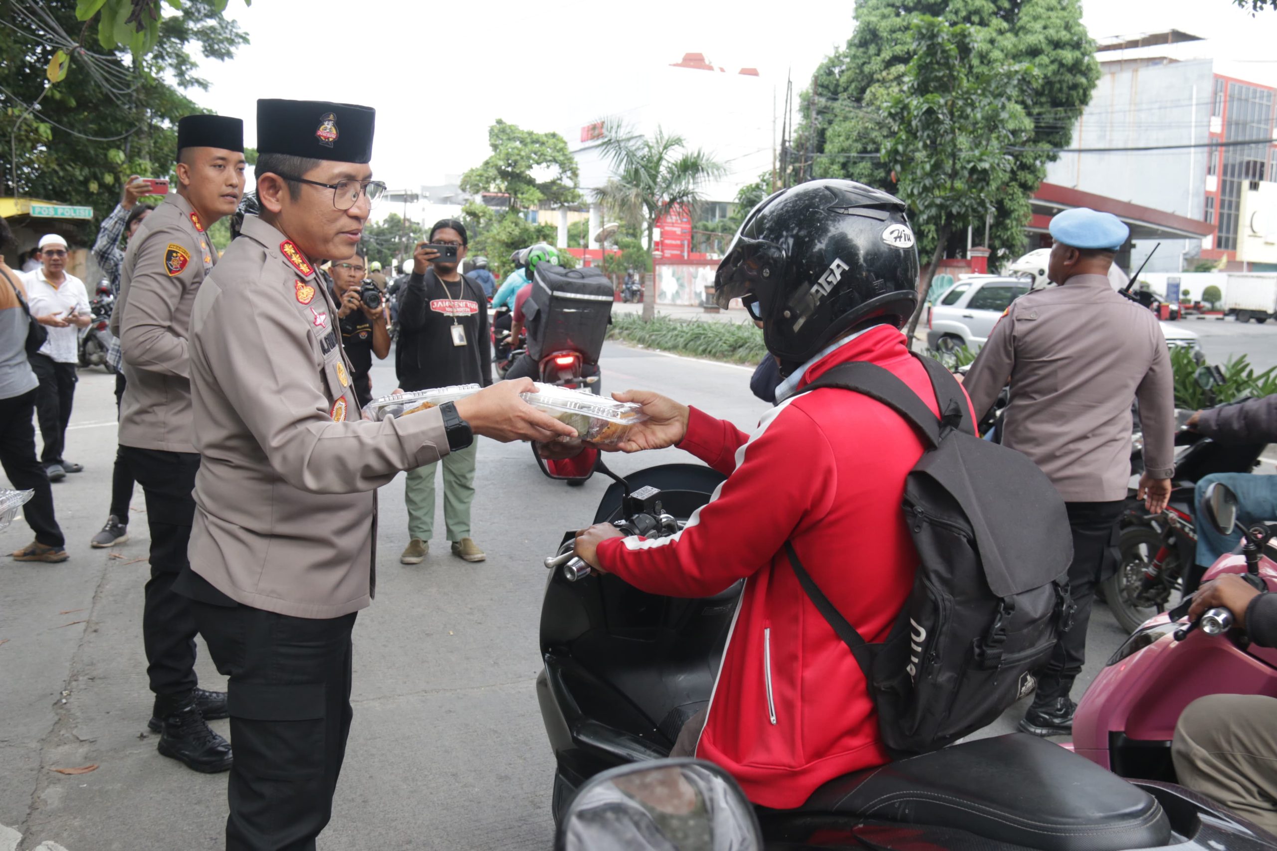 Jakarta, – Dalam rangka meningkatkan kedekatan dengan masyarakat serta berbagi di bulan suci Ramadan, Kapolres Metro Jakarta Utara, Kombes Pol. H. Ahmad Fuady, SH, S.IK, MH, beserta Pejabat Utama (PJU) Polres Metro Jakarta Utara, menggelar kegiatan sosial di wilayah Polsek Metro Penjaringan, Jakarta Utara, Senin (10/3).Kegiatan ini diawali dengan pembagian 200 paket takjil kepada para pengendara yang melintas di depan Polsek Metro Penjaringan. Kapolres Metro Jakarta Utara didampingi Kapolsek Metro Penjaringan, Akbp. Agus Ady Wijaya, SH, S.IK, M.Si, serta jajaran PJU tampak turun langsung ke jalan untuk memberikan takjil kepada masyarakat yang sedang dalam perjalanan menjelang waktu berbuka puasa.Tak hanya itu, rombongan juga melanjutkan kegiatan dengan membagikan 10 paket sembako kepada warga Muara Baru. Setiap paket berisi beras 5 kg, mie instan 4 bungkus, minyak goreng ½ kg, dan gula pasir 1 kg. Bantuan ini disambut dengan antusias oleh warga setempat yang merasa terbantu dengan kepedulian dari jajaran kepolisian.Setelah berbagi sembako, Kapolres dan rombongan menyapa para pedagang dan warga di Pasar Muara Baru, memastikan kondisi keamanan serta mendengar langsung keluhan dari masyarakat. Interaksi hangat antara aparat kepolisian dan warga menjadi momen penting dalam membangun sinergi antara polisi dan masyarakat.Menariknya, Kapolres Metro Jakarta Utara juga turut serta dalam kegiatan pengaturan lalu lintas di Jl. Muara Baru Raya, membantu kelancaran arus kendaraan menjelang waktu berbuka puasa. Aksi ini mendapat apresiasi dari pengguna jalan yang terkesan dengan kepedulian aparat kepolisian dalam menjaga ketertiban lalu lintas.Sebagai penutup, rombongan melaksanakan buka puasa bersama di sebuah Warteg di Jl. Luar Batang V, Penjaringan. Momen ini semakin mempererat kebersamaan antara kepolisian dan warga sekitar, menciptakan suasana akrab dan penuh kebersamaan di bulan penuh berkah ini.Kegiatan ini berlangsung dengan aman, tertib, dan kondusif, serta diharapkan dapat terus mempererat hubungan antara kepolisian dan masyarakat. Kapolres Metro Jakarta Utara menegaskan bahwa kegiatan serupa akan terus dilakukan untuk mendukung ketertiban serta memberikan manfaat nyata bagi warga