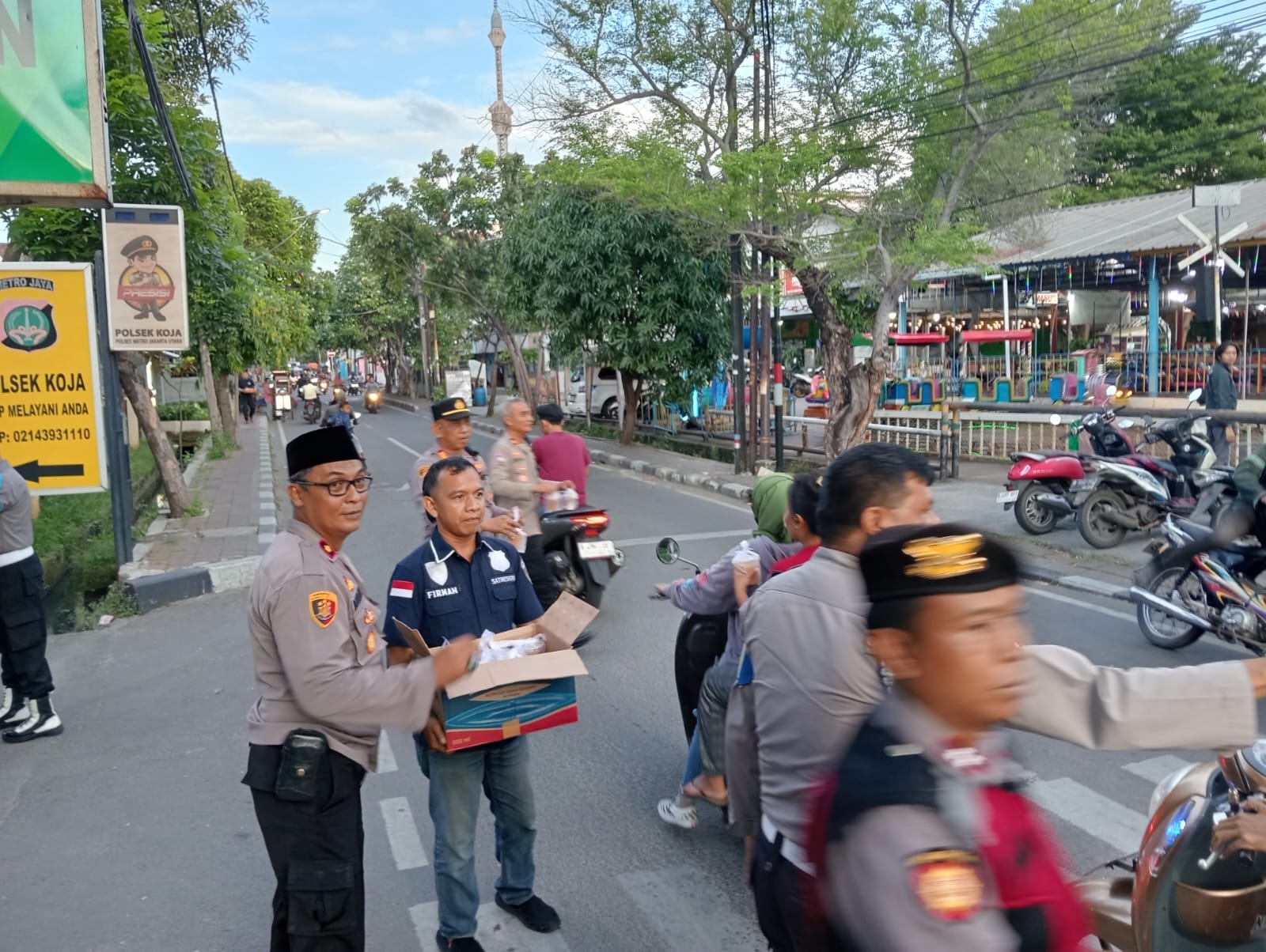 Dipimpin oleh Kapolsek Koja, Kompol Dr. Andry Suharto, S.H., M.H., para anggota Polsek Koja membagikan 100 paket takjil yang terdiri dari kolak, kurma, dan air mineral. Warga yang melintas dan berada di sekitar lokasi pun menyambut dengan antusias.