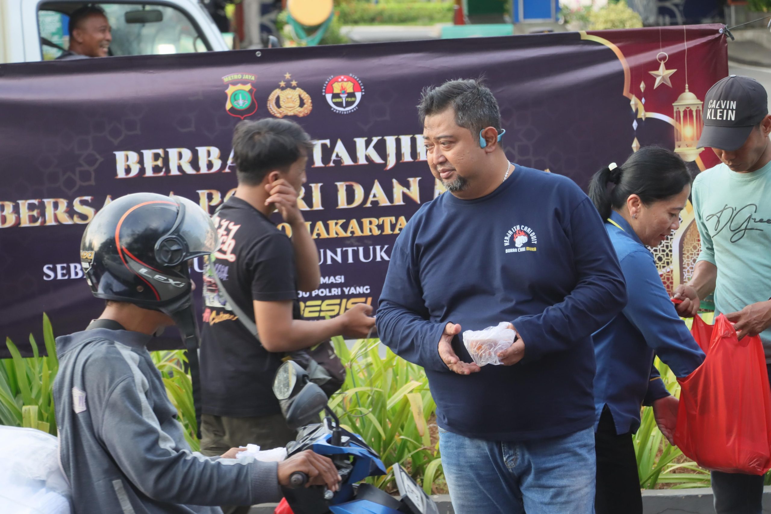 Sebanyak 150 paket takjil dibagikan kepada masyarakat yang melintas di kawasan tersebut. Momen ini menjadi bentuk nyata kepedulian Polri dan Media terhadap masyarakat yang sedang menjalankan ibadah puasa.