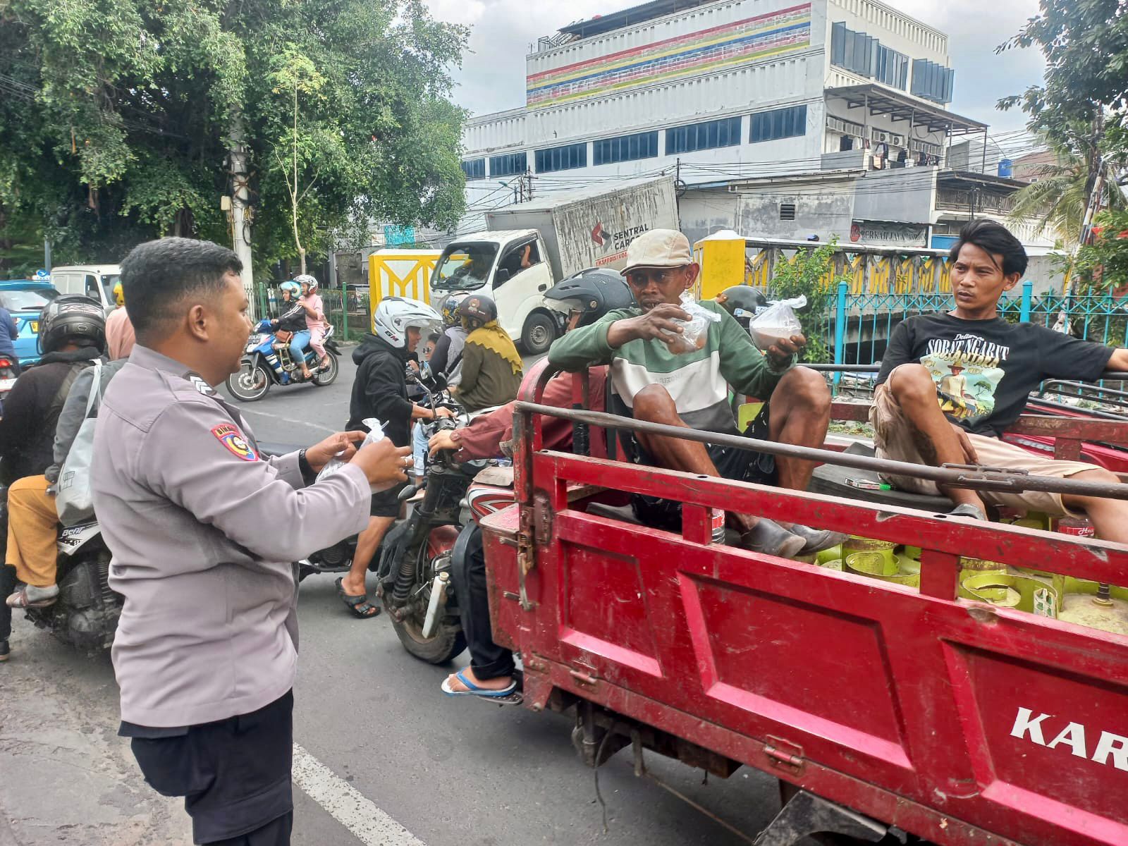 Di Pademangan Barat Polisi Bagikan Takjil Berbuka Puasa