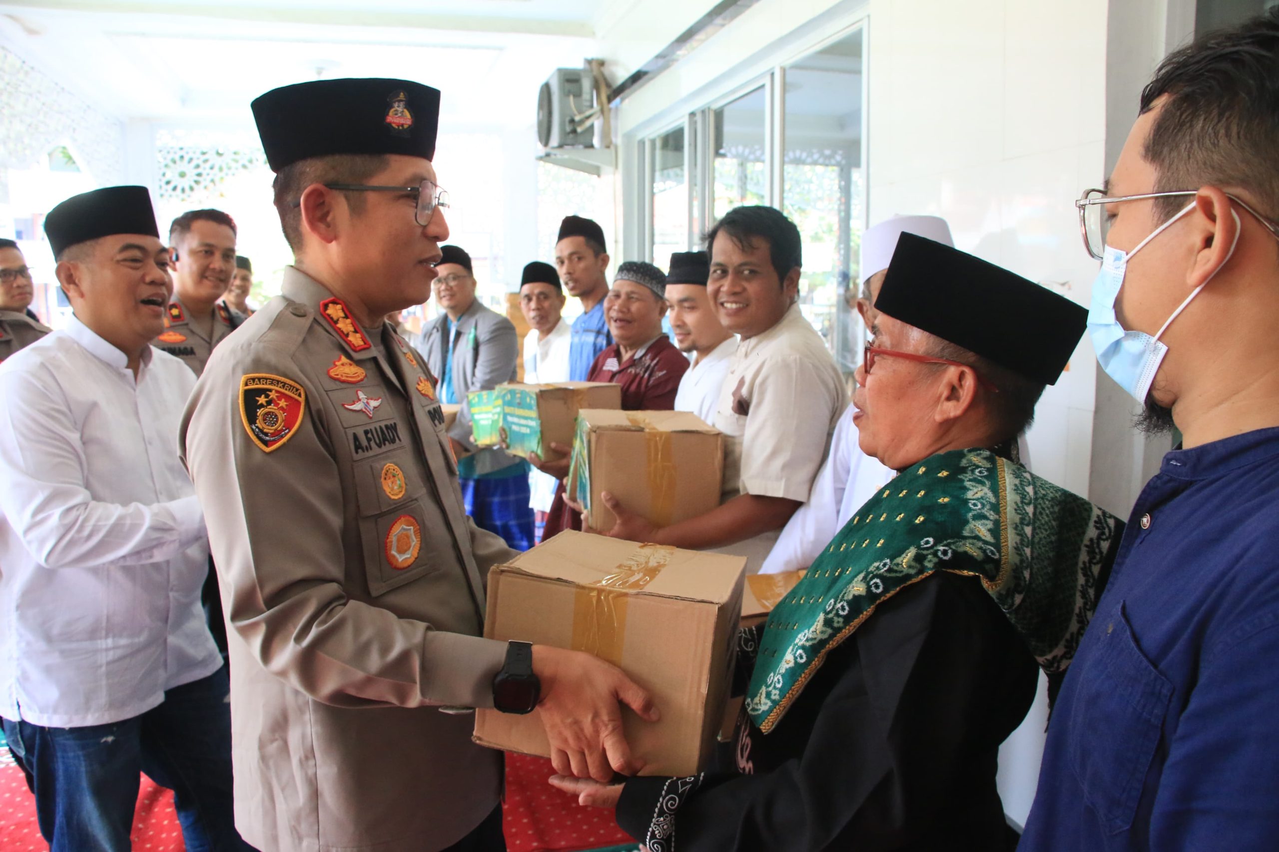 Sebagai penutup acara, Kapolres menyerahkan bantuan sembako kepada pengurus masjid dan masyarakat sekitar sebagai wujud kepedulian sosial Polri terhadap kondisi masyarakat, khususnya di bulan suci Ramadhan.
