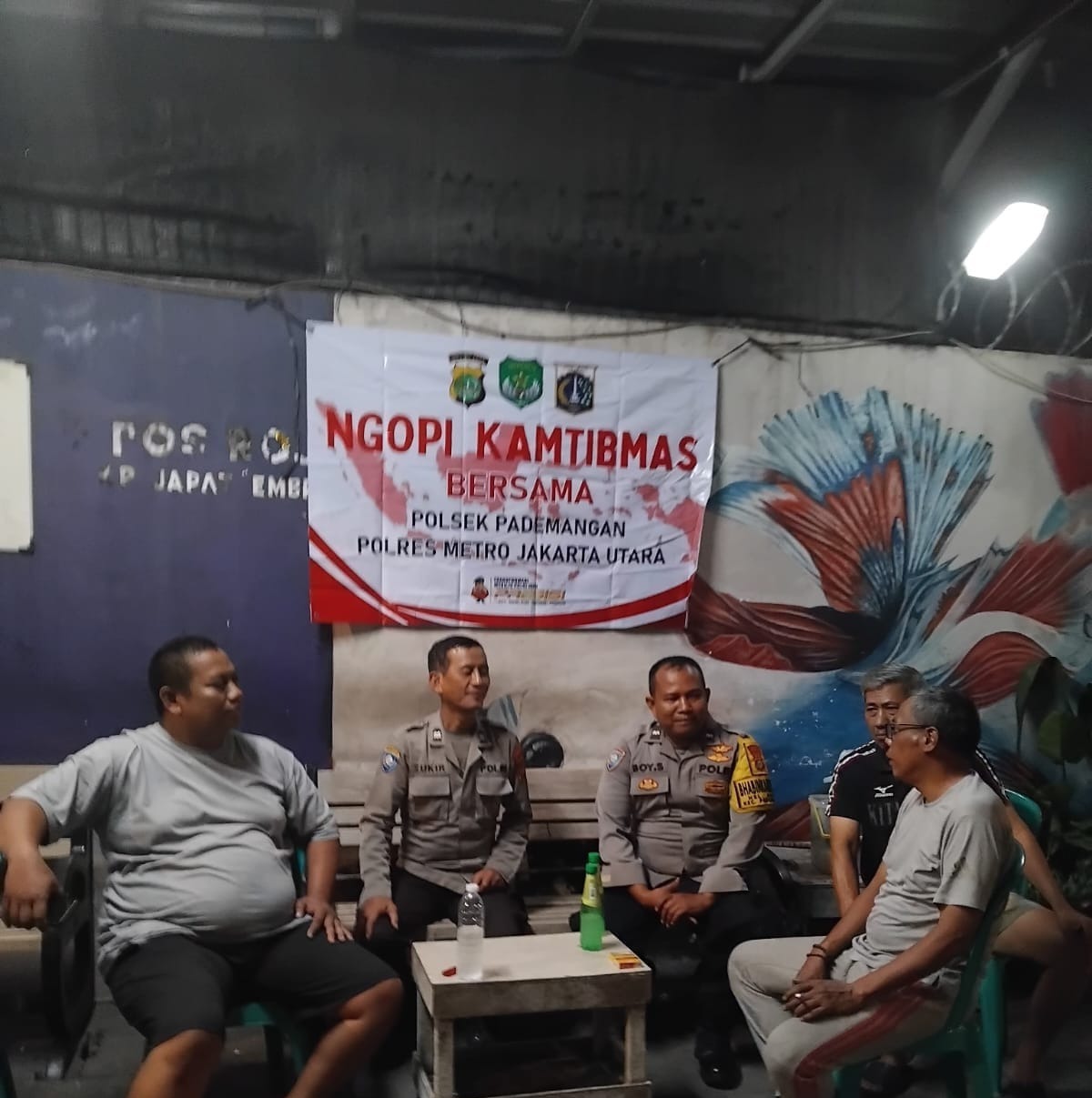 Jakarta – Dalam rangka menjaga stabilitas keamanan dan ketertiban masyarakat (Harkamtibmas), serta mendukung program Cooling System, Bhabinkamtibmas Kelurahan Ancol melaksanakan kegiatan Ngopi Kamtibmas bersama warga di Jalan Lodan Dalam VI RT 01 RW 01, Kelurahan Ancol, Kecamatan Pademangan, Jakarta Utara, Minggu (20/4/25) malam.
