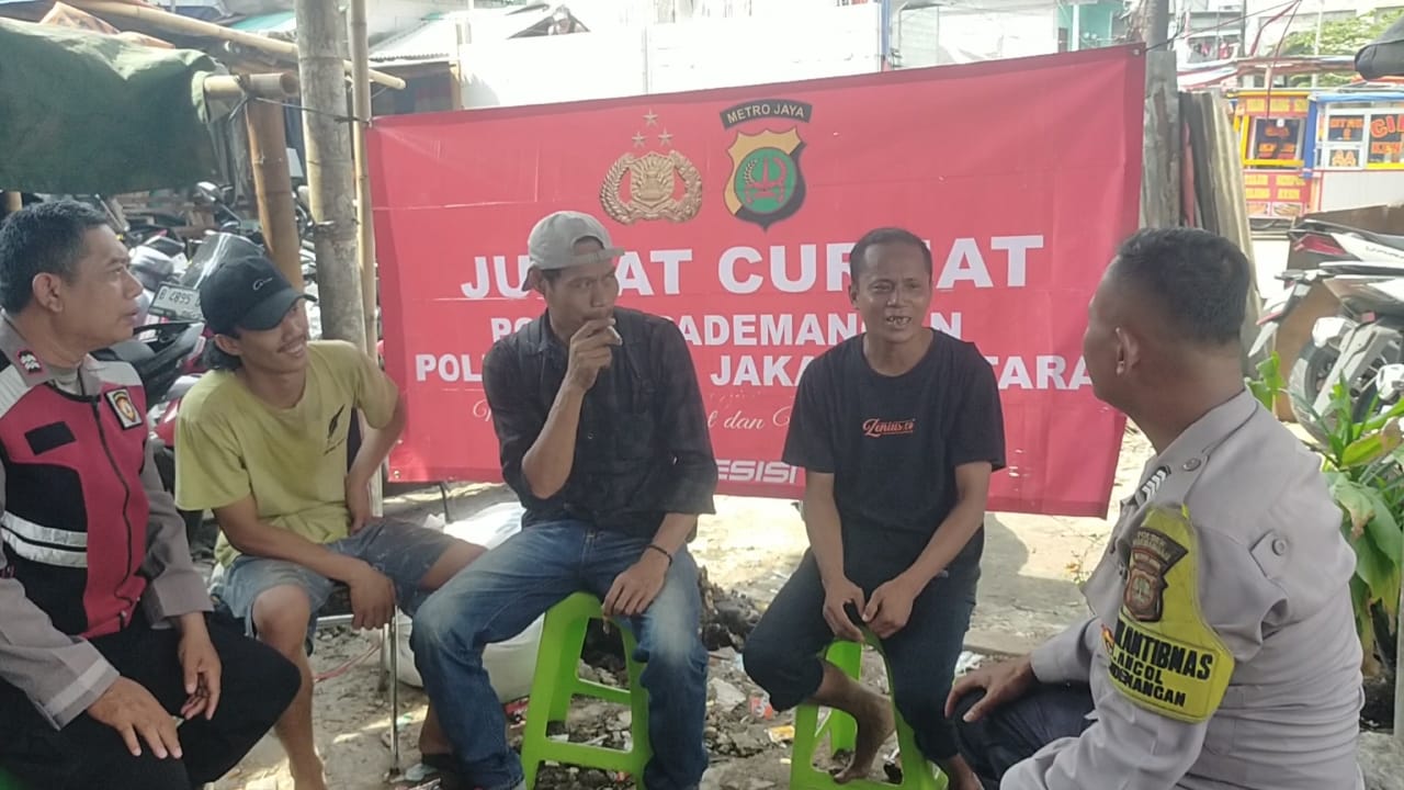 Jakarta – Dalam upaya mempererat hubungan dengan masyarakat sekaligus menjaga kondusifitas lingkungan, Polsek Pademangan menggelar kegiatan Jumat Curhat bersama warga di Jalan Kampung Muka Blok B RT 09 RW 04 Kelurahan Ancol Pademangan Jakarta Utara, Jumat (9/5/25).