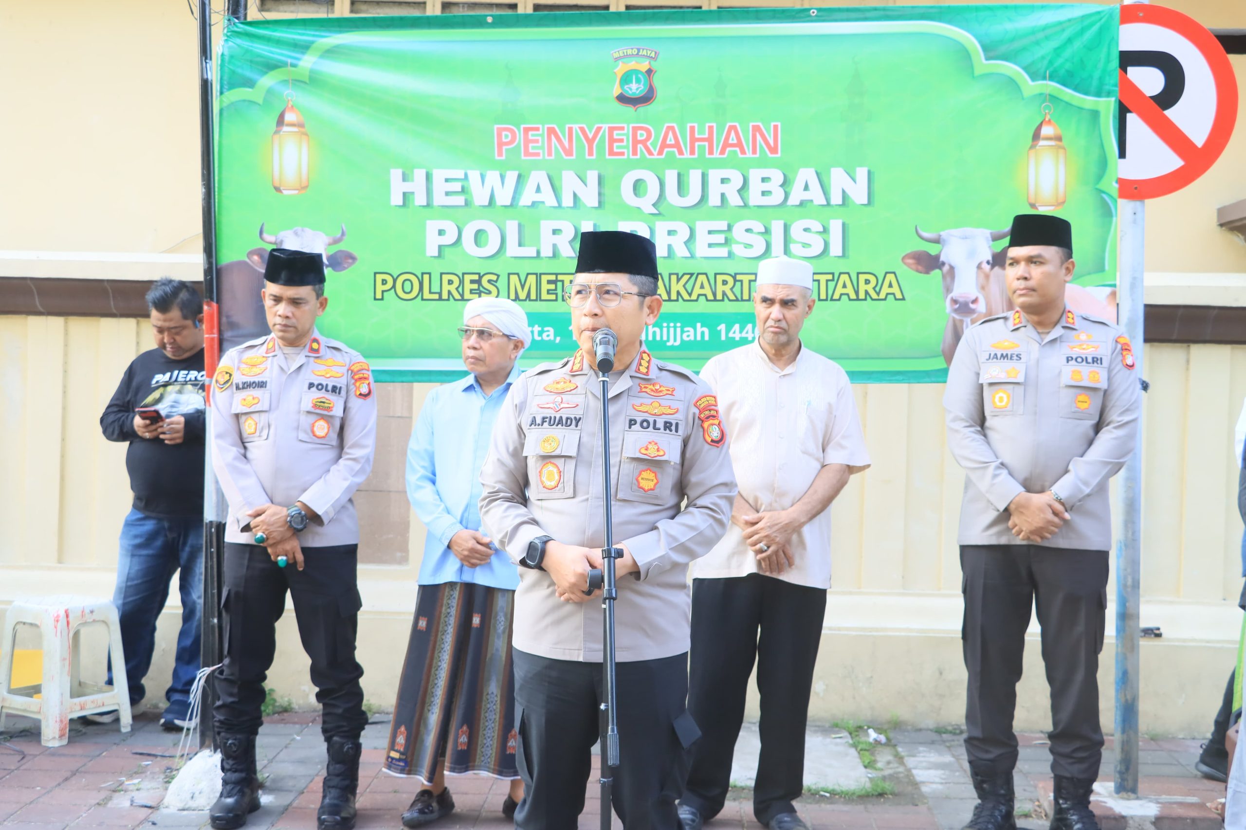 Jakarta – Dalam rangka menyambut Hari Raya Idul Adha 1446 Hijriah, Polres Metro Jakarta Utara melaksanakan kegiatan penyerahan hewan qurban kepada tokoh agama dan lembaga masyarakat pada Kamis (5/6/2025) sore. Kegiatan berlangsung di Mapolres Metro Jakarta Utara dan dipimpin langsung oleh Kapolres, Kombes Pol H. Ahmad Fuady, S.H., S.I.K., M.H.