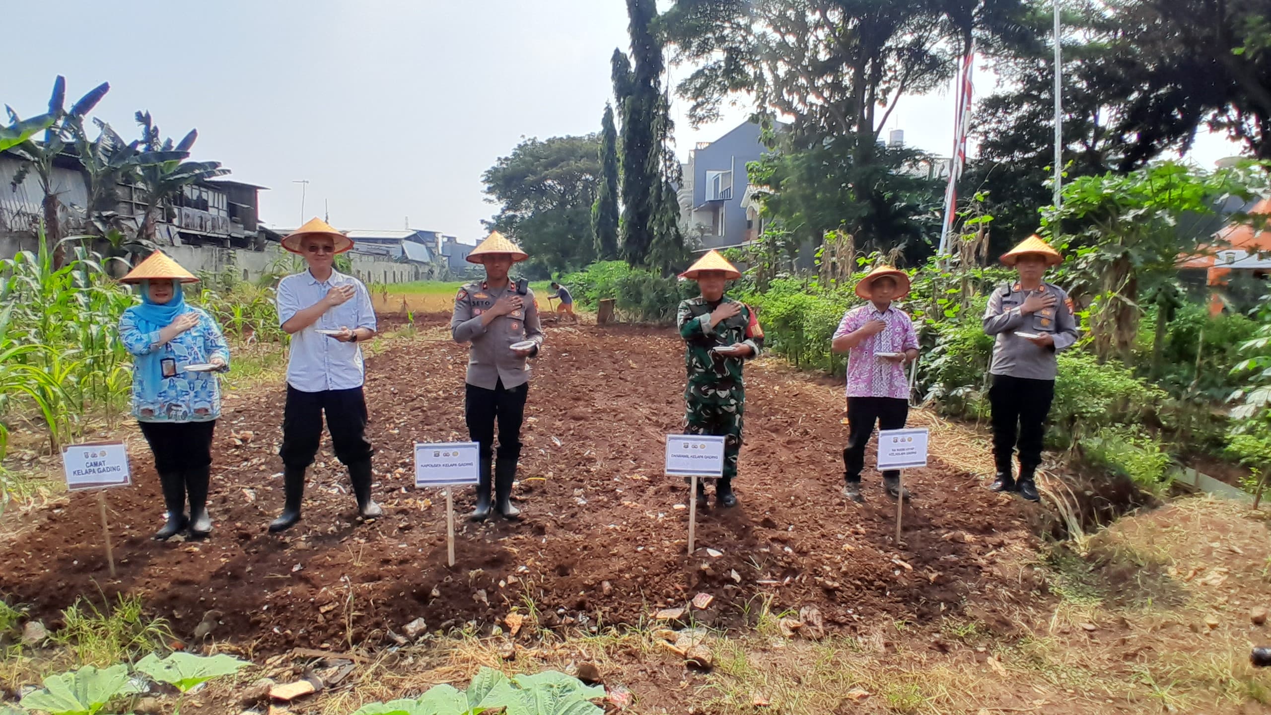 Acara panen ini turut dihadiri jajaran pejabat Polsek Kelapa Gading, di antaranya Wakapolsek AKP Purwo Widodo, S.H., M.H., serta para Kanit, Kapolsubsektor, dan personel Bhabinkamtibmas. Dari unsur TNI, hadir Babinsa dari Koramil Kelapa Gading, yakni Serda Agus dan Koptu Misnan.