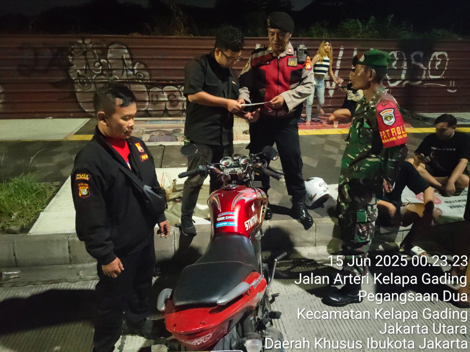 Patroli dimulai pukul 23.35 WIB menyasar kawasan strategis seperti Jl. Kelapa Gading Nias Raya, Jl. Boulevard Raya, Jl. Hybrida Ujung, hingga Jl. Arteri Gading Pelangi, Kelapa Gading.