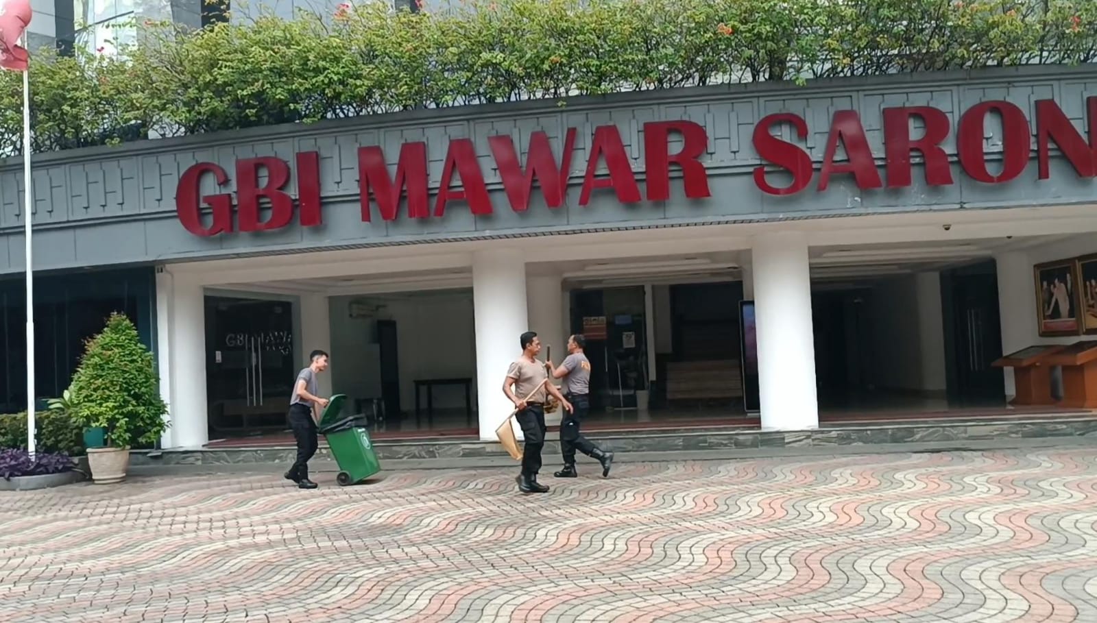 Tak hanya aparat kepolisian, kegiatan juga diikuti oleh pengurus dan staf keamanan Gereja Mawar Saron, seperti Bapak Jimmy selaku pengurus dan Bapak Philipus dari tim keamanan.