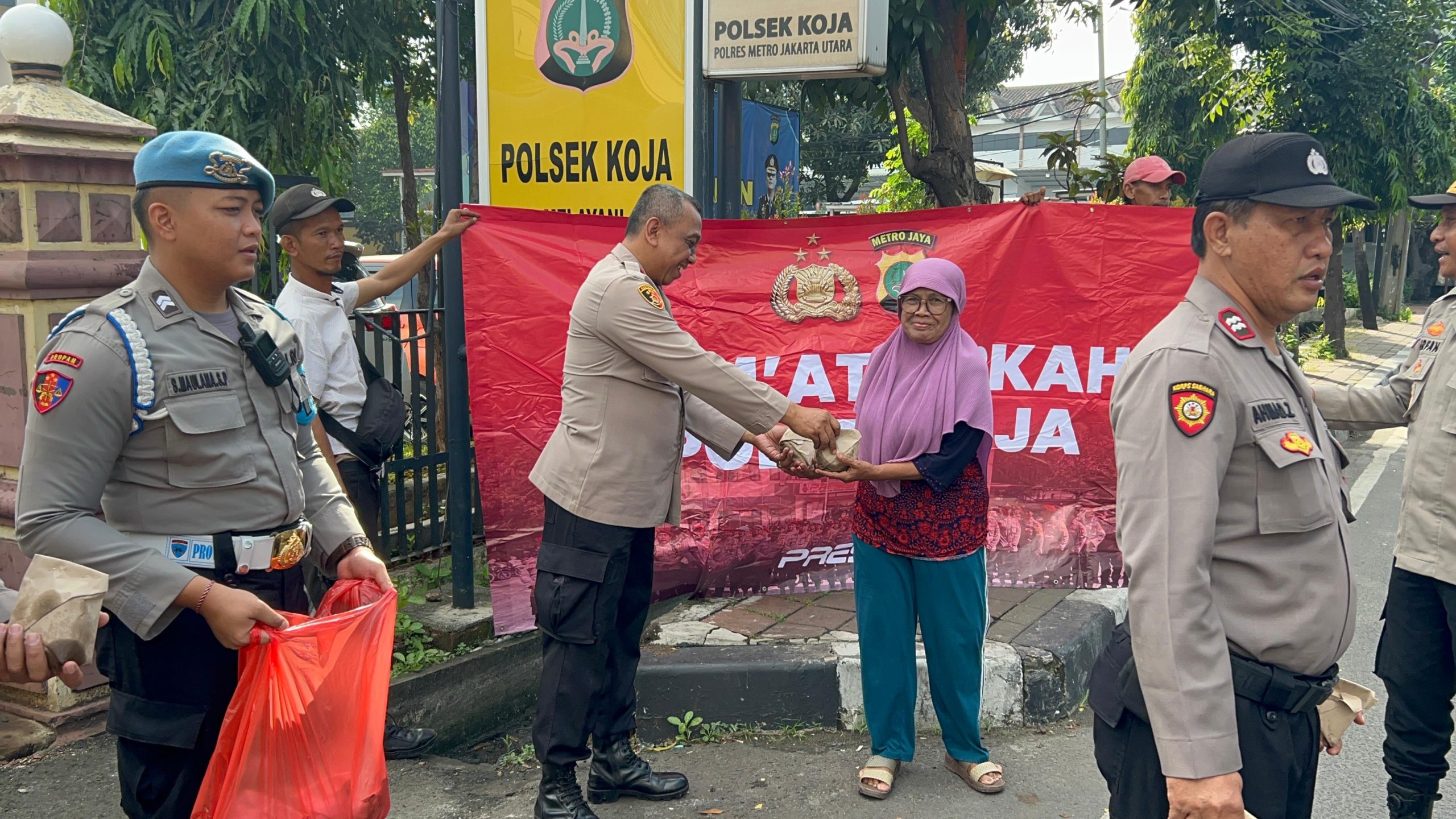 Jakarta Utara — Polsek Koja kembali melaksanakan kegiatan sosial bertajuk “Jumat Berkah” dengan membagikan 50 kotak nasi kepada masyarakat di depan Mako Polsek Koja, Jalan Bhayangkara, Kelurahan Tugu Utara, Kecamatan Koja, Jakarta Utara, pada Jumat pagi (20/6/2025).