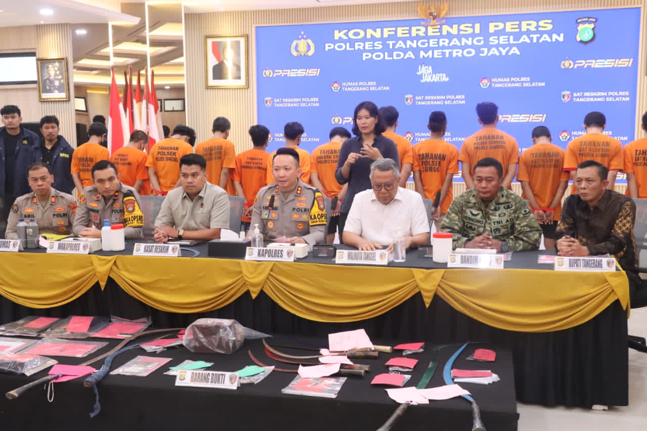 Kapolres Tangsel AKBP Victor D.H Inkiriwang, S.H., S.I.K., M.Si. menyampaikan hal tersebut dalam konferensi pers di Aula Guyub Polres Tangsel, sabtu 15 November 2025. Hadir dalam acara tersebut Walikota Tangsel Drs. H. Benyamin Davnie, Wakapolres Tangsel Kompol Muhibbur RA., S.H., M.H., CPHR., CBA, Perwakilan Bupati Tangerang dan perwakilan Kodim 0506 Tangerang, tokoh masyarkat serta Pejabat utama Polres Tangsel dan Kapolsek jajaran.