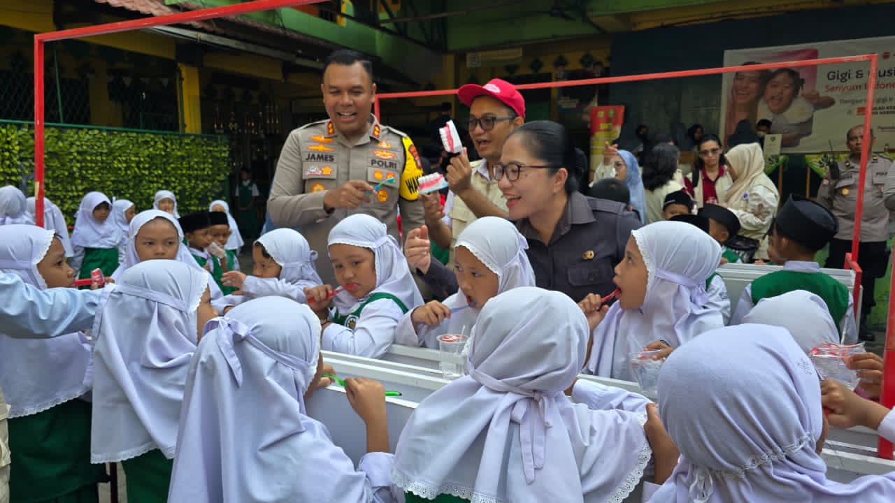 Jakarta Utara — Polres Metro Jakarta Utara bersama Persatuan Dokter Gigi Indonesia (PDGI) Cabang Jakarta Utara mengadakan layanan bakti kesehatan di MI Al-Wathaniyah, Rorotan, Selasa (18/11/2025). Kegiatan yang dimulai pukul 07.30 WIB ini mendapat antusiasme tinggi dari para siswa dan warga sekitar.