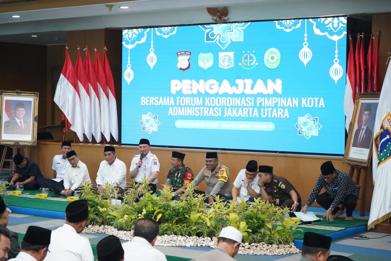 Jakarta Utara, — Pemerintah Kota Administrasi Jakarta Utara menggelar pengajian bulanan Forum Koordinasi Pimpinan Kota (Forkopimko) di Ruang Bahari Lantai 14, Kantor Wali Kota Jakarta Utara, Rabu (19/11/2025) pagi. Kegiatan yang dimulai pukul 09.00 WIB itu dipimpin langsung oleh Wali Kota Jakarta Utara, Hendra Hidayat.
