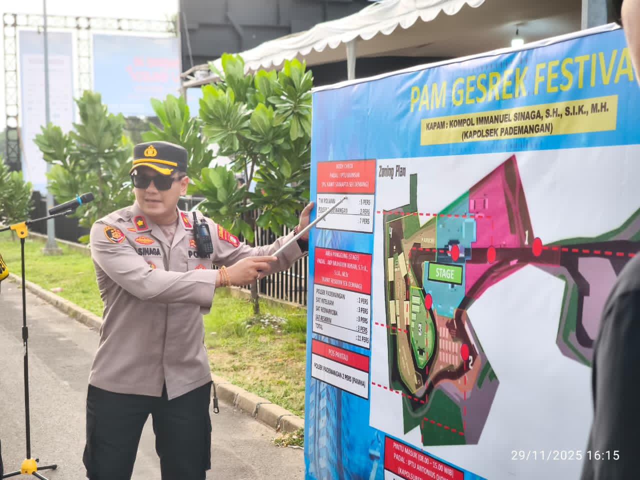 Gesrek Festival 2025 berlangsung selama tiga hari, 28–30 November, dengan pola pengamanan dua shift setiap harinya.