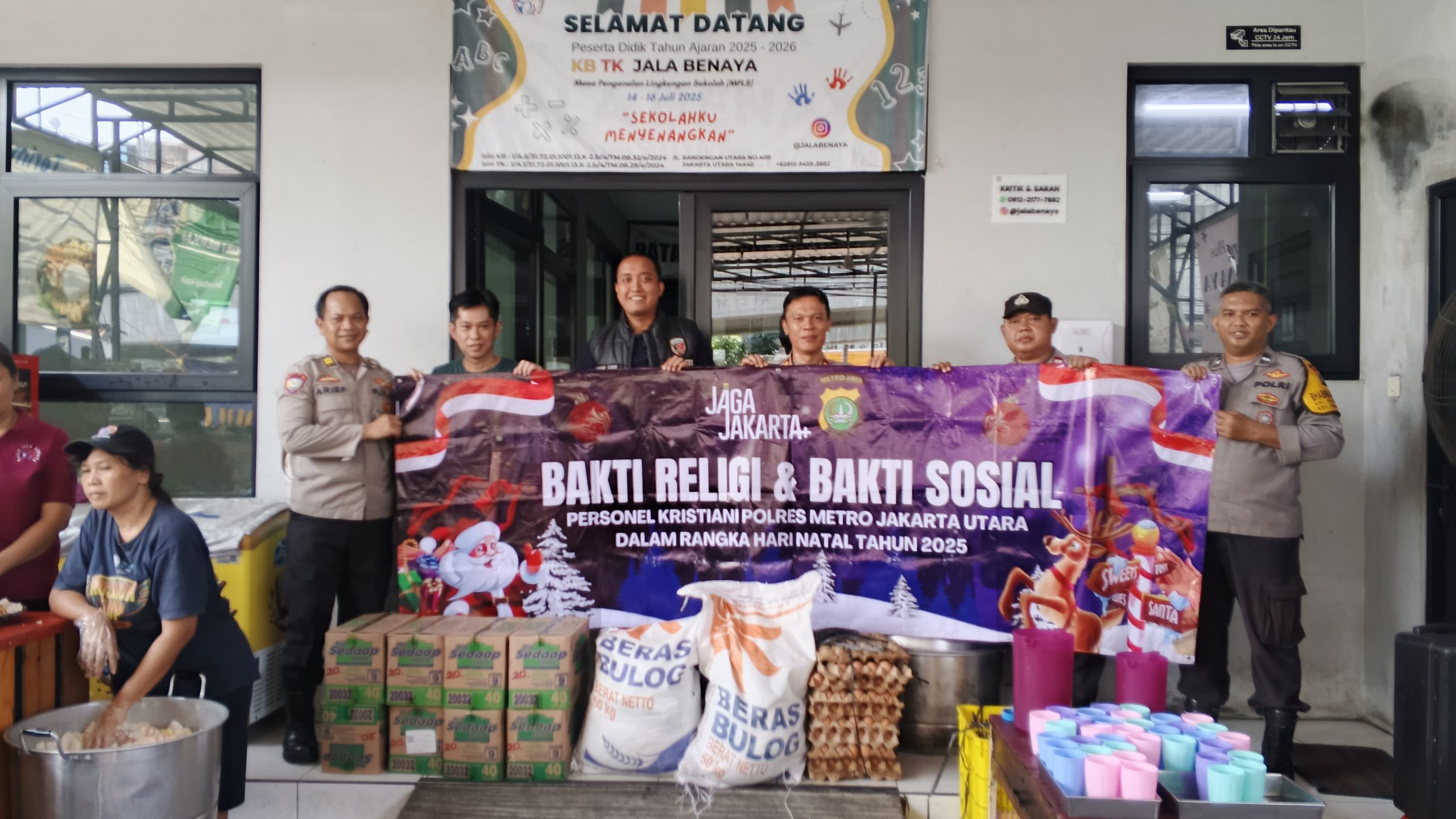 Jakarta Utara — Dalam upaya memperkuat nilai kemanusiaan, kepedulian sosial, serta menjalin hubungan harmonis dengan masyarakat lintas agama, Polsek Metro Penjaringan Polres Metro Jakarta Utara kembali melaksanakan program Jaga Jakarta, Jaga Lingkungan melalui kegiatan Bakti Religi dan Bakti Sosial, Jumat (05/12/2025) di Rumah Diakonia Jala Benaya, Jalan Bandengan Utara RT 001/015, Kelurahan Penjaringan, Kecamatan Penjaringan, Jakarta Utara.