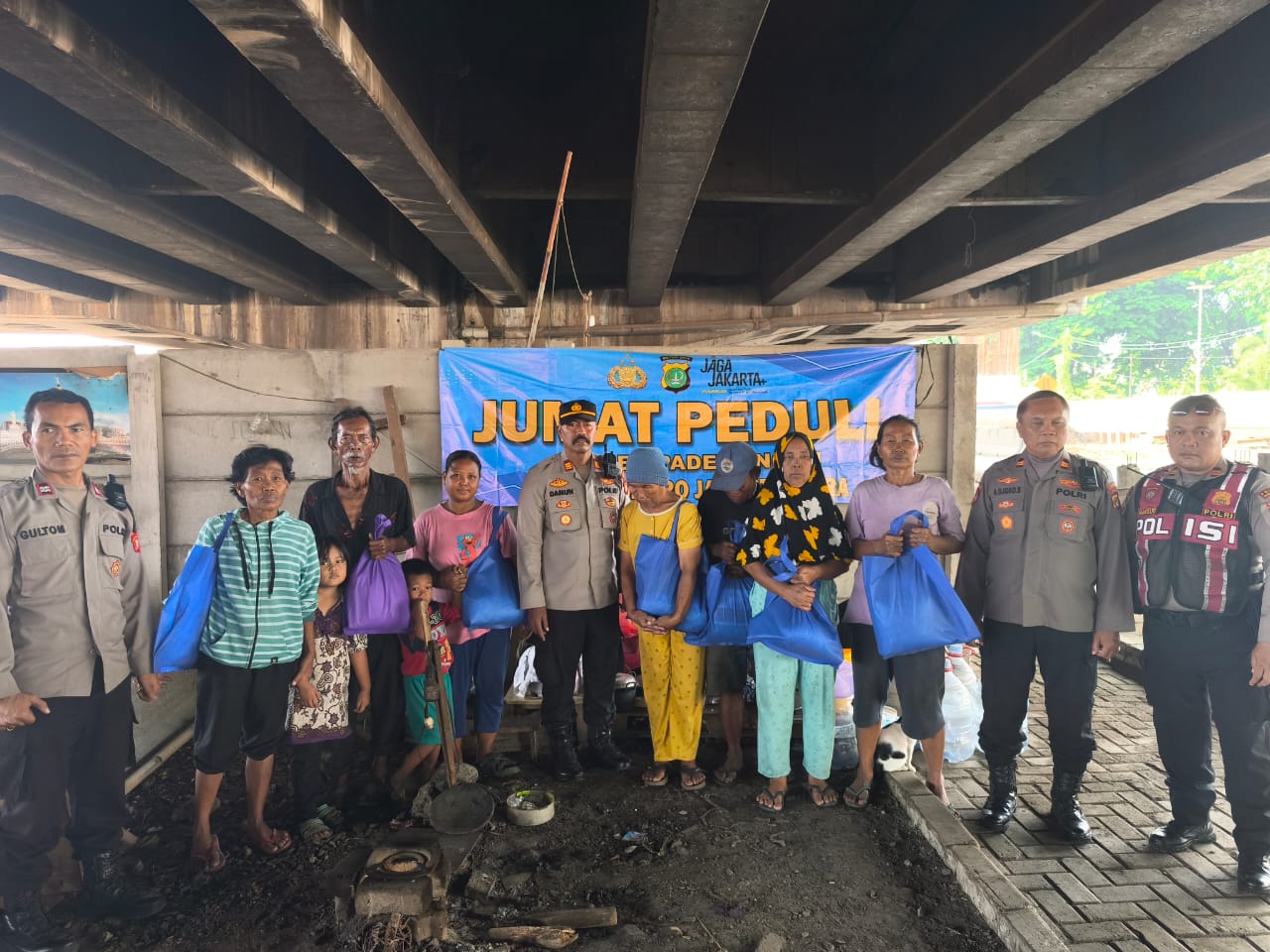 Jakarta Utara — Polsek Pademangan menggelar kegiatan Jumat Peduli dengan membagikan paket sembako kepada warga yang tinggal di bawah kolong Tol Jalan Lodan Raya, Kelurahan Ancol, Pademangan, Jakarta Utara, Jumat (5/12/2025). Program ini merupakan bagian dari upaya Cooling System sekaligus mendukung program Kapolda Metro Jaya bertajuk “Jaga Jakarta – Jaga Lingkungan.”