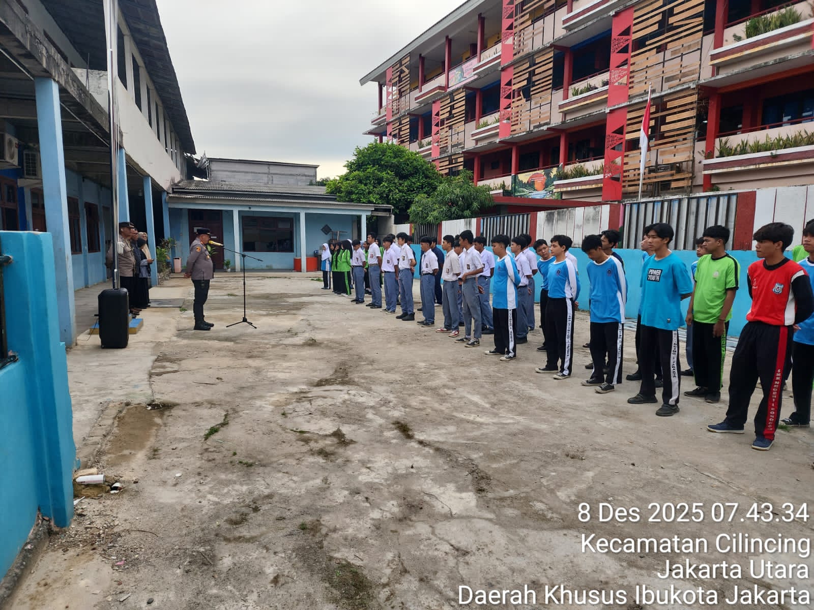 JAKARTA UTARA, — Kepolisian Sektor Cilincing melaksanakan program Police Go To School di SMK 1 Cilincing, Jakarta Utara, Senin (8/12/2025). Kegiatan ini dipimpin Wakapolsek Cilincing, AKP Syuaib Bahrun, SH, didampingi Kanit Bimas Polsek Cilincing, IPDA Sugeng, SE, serta jajaran anggota Polsek Cilincing.