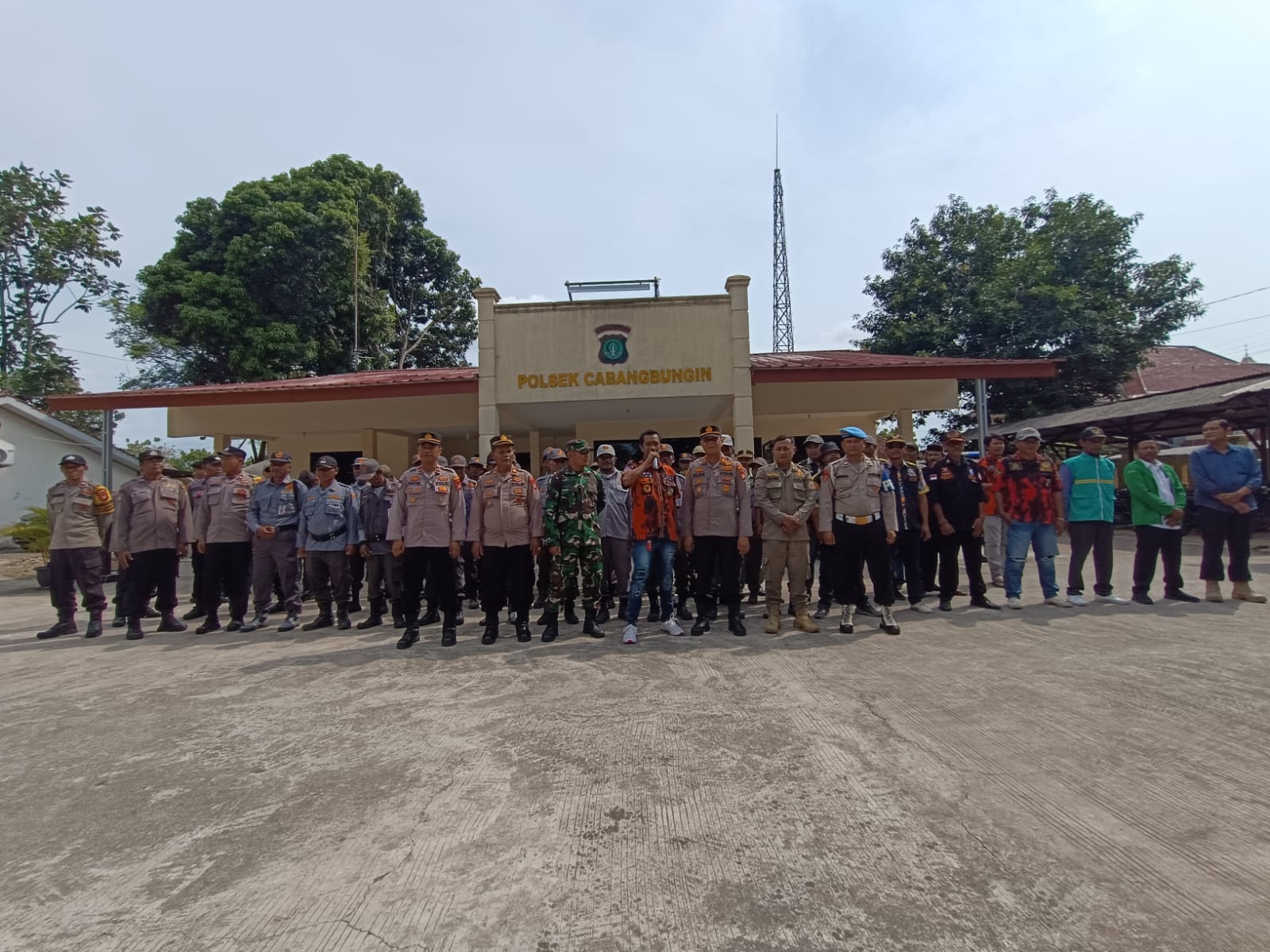 Bekasi, —Polsek Cabangbungin menggelar apel bersama unsur TNI, Polri, Satpol PP, Linmas, organisasi masyarakat (ormas), lembaga swadaya masyarakat (LSM), serta potensi masyarakat di halaman Mako Polsek Cabangbungin, Bekasi, Rabu (10/12/2025). Kegiatan ini digelar sebagai langkah pengecekan kesiapan personel dalam menghadapi potensi gangguan keamanan maupun bencana di wilayah.