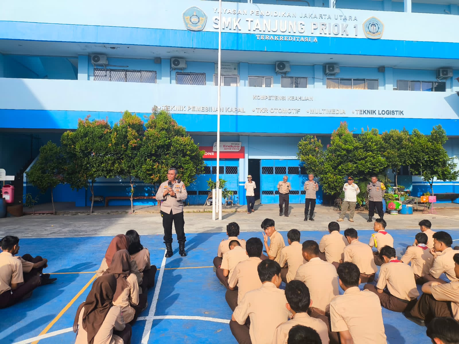 Jakarta Utara, — Kepolisian Sektor Koja, Jakarta Utara, menggelar program Police Go To School di SMK Tanjung Priuk 1, Kelurahan Lagoa, Rabu (10/12/2025). Kegiatan yang diikuti sekitar 300 siswa dan siswi ini bertujuan memberikan edukasi mengenai pencegahan tawuran, bahaya narkoba, perundungan, hingga maraknya praktik judi online di kalangan remaja.