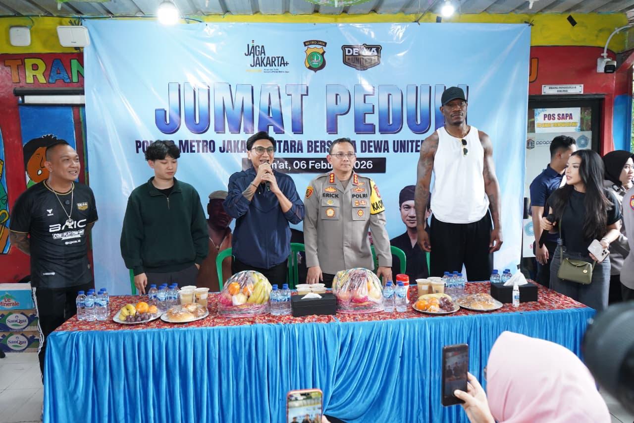 Jakarta Utara, – Kapolres Metro Jakarta Utara Kombes Pol Erick Frendriz, S.I.K., M.Si., menggelar kegiatan Jumat Peduli bersama atlet Dewa United Banten FC serta sejumlah public figure di RPTRA Sungai Bambu, Kelurahan Sungai Bambu, Kecamatan Tanjung Priok, Jakarta Utara, Jumat (6/2/2026).