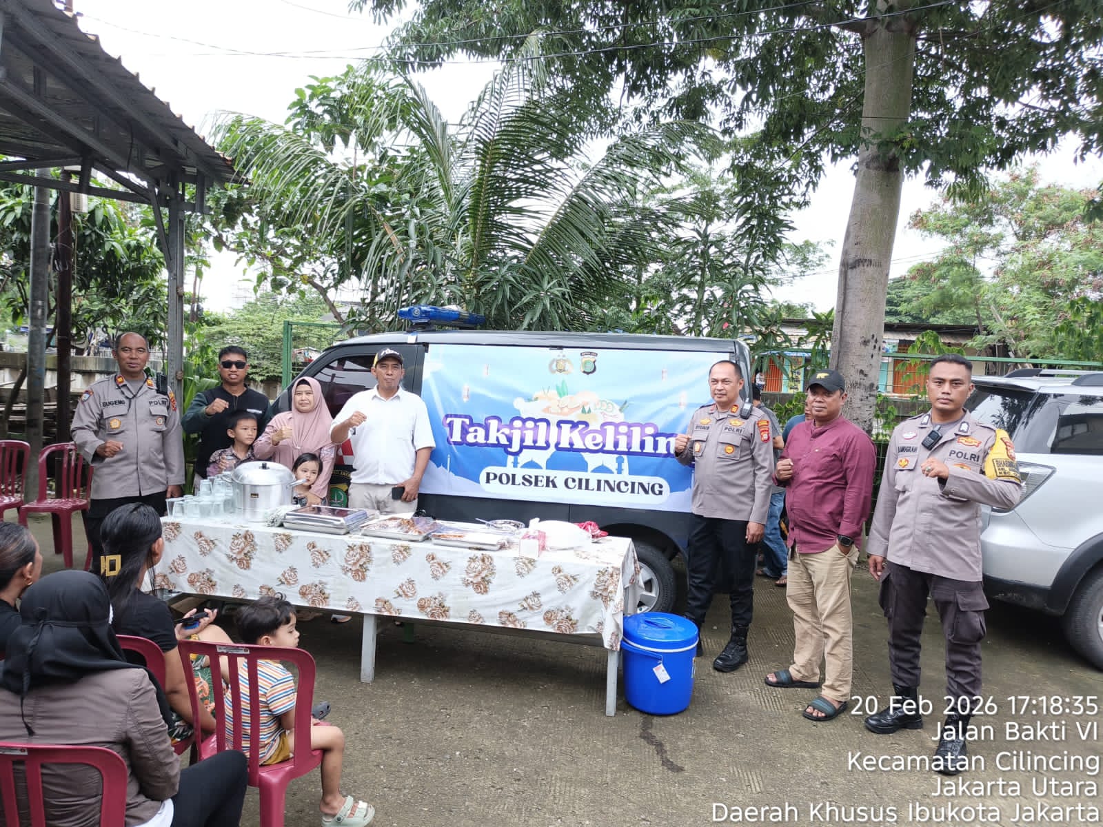 Jakarta Utara, – Jajaran Polsek Cilincing menggelar kegiatan pembagian takjil keliling kepada masyarakat di Kantor RW 09, Jalan Bakti VI, Kelurahan Cilincing, Kecamatan Cilincing, Jakarta Utara, Jumat (20/2/2026).