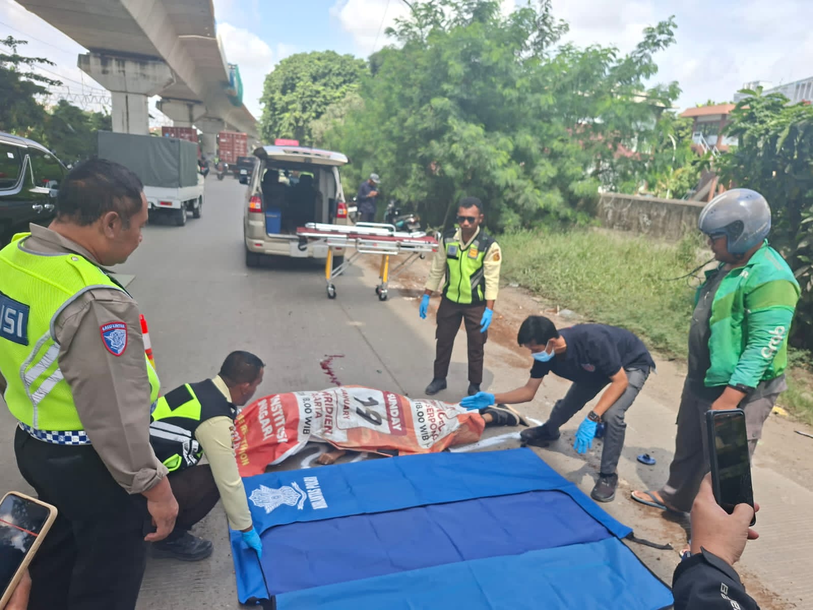 Jakarta – Kecelakaan maut kembali terjadi di wilayah Jakarta Utara. Kecelakaan yang memakan korban jiwa ini terjadi pada Rabu (25/2/2026) sekitar pukul 09:15 WIB di Jl.R.E.Martadinata (dari arah Tanjung Priok menuju Ancol). Kecelakaan maut ini terjadi antara sepeda motor dan truk kontainer sempat membuat arus lalu lintas menjadi tersendat.Pemotor yang tewas dalam kecelakaan tersebut DR (43 tahun) warga Kebon Bawang, Tanjung Priok dengan motor Yamaha Gear B 4535 UBG. DR mengalami luka parah dibagian kepala meskipun telah menggunakan helm (helm pecah). Sementara truk kontainer B 9026 KOM dengan sopir A mengakui tidak menyadari laka lantas dan tiba-tiba DR sudah berada dibagian belakang kontainer. Dari pantauan awak media di TKP, terlihat Aiptu Isnaini mengumpulkan barang bukti dan informasi seputar kejadian lakalantas maut tersebut. Proses evakuasi jenazah DR dilakukan sekitar pukul 10:05 WIB dan lalu lintas kembali lancar. Jenazah DR (43 tahun) akan dibawa ke RSCM. Kasus lakalantas maut ini sedang ditangani Unit Laka Lantas Polres Metro Jakarta Utara.